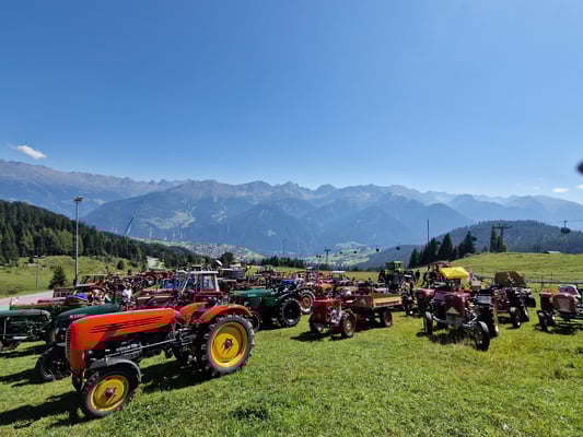 Am 8.09.2023 um 04.15 machten sich unsere Vereinsmitglieder auf den Weg zum Traktorentreffen in Serfaus-Fiss-Ladis. Die Fahrt ging durch die Rheinschlucht - Chur - Prättigau - Klosters - via Bahnverlad nach Susch - Engadin - Fiss. Im Prättigau konnten die Traktorfahrer einmalig die Sunnibergbrücke und den Gotschnatunnel befahren, da die Durchfahrt Klosters gesperrt war. Von Freitag bis Sonntag nahmen sie an den Ausfahrten in Fiss-Serfaus-Ladis teil. Das Wetter zeigte sich während des ganzen Wochenende von der besten Seite. Schön waren die gemeinsamen Stunden und Gespräche mit den Oldiefahrern aus Österreich - Deutschland -Holland und der Schweiz. Am Montag Morgen um 8.00 Uhr machten sich die Traktörler auf den Heimweg in die Surselva. Diesesmal fuhren sie über den Flüala Pass - Davos - Tiefenkastel - Rheinschlucht - Ilanz - Obersaxen zurück. Nach vier Tagen zeigte der Kilometerzähler 413 gefahrene Kilometer in 22 Betriebsstunden an. Schön wars!